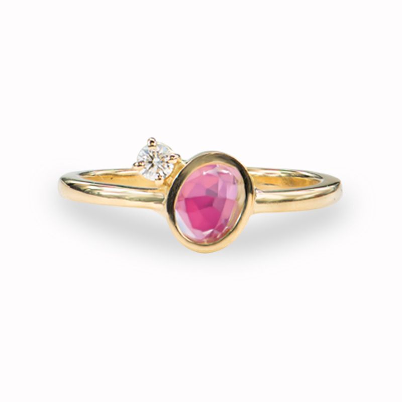 Het fijne aan asjuwelen is dat je op een zeer discrete manier een ring kan maken waarin je geliefde steeds in uw nabijheid is.Het centrale ovale potje kan gevuld worden met assen en in de kleur dat je zelf verkiest. Dit 18 kt gouden model maken we in alle vormen en steeds als fijn accent een diamantje.