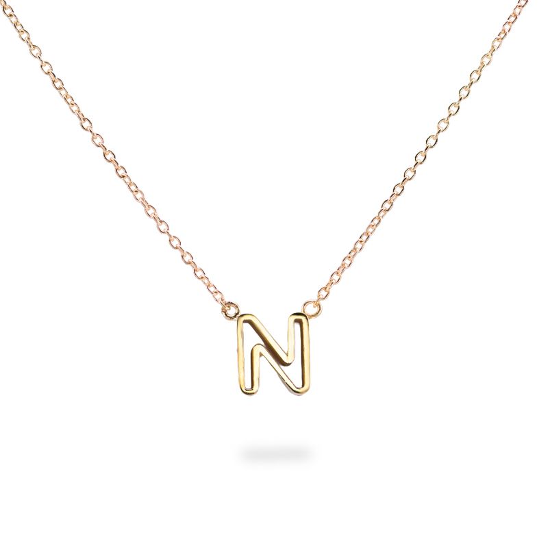 Geelgouden 18 kt letterhanger met doorzichtig design. Elke letter kunnen we natuurlijk maken en zowel in wit als in rosé goud.
